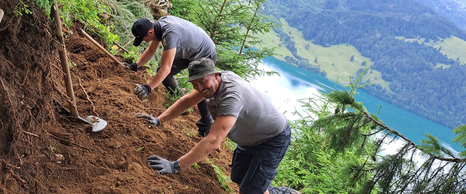 Les volontaires travaillent dans la forêt de montagne et apportent une contribution précieuse. Sous la direction d’experts, ils apprennent sur le terrain les particularités et les interconnexions de cet écosystème fascinant. En participant activement, ils vivent l’expérience de la forêt de montagne et contribuent directement à la préservation de ses nombreuses fonctions. Cela renforce à la fois leur conscience personnelle et écologique.