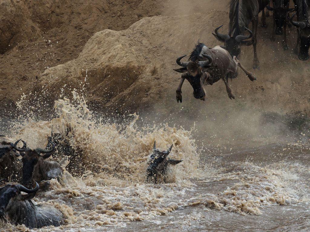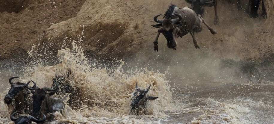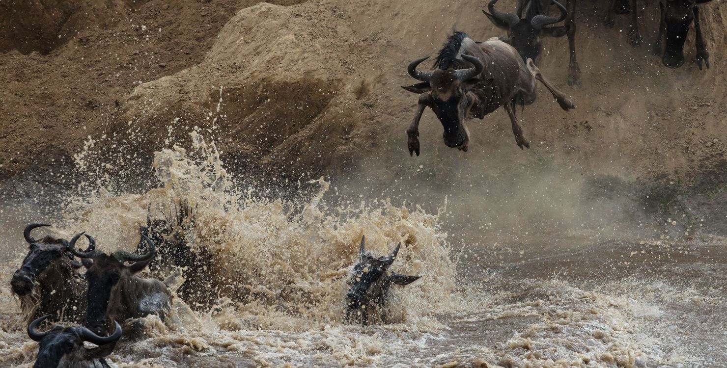 Le Masai Mara, situé au sud-ouest du Kenya, est l’une des réserves les plus emblématiques d’Afrique, réputée pour la richesse de sa faune et ses vastes plaines ponctuées d’acacias. C’est l’un des meilleurs endroits pour observer les « Big Five » (lion, léopard, éléphant, buffle et rhinocéros), ainsi que d’innombrables herbivores et prédateurs. Le spectacle le plus impressionnant reste la Grande Migration : entre juillet et octobre, plus d’un million de gnous, accompagnés de zèbres et de gazelles, traversent la rivière Mara depuis le Serengeti en Tanzanie, affrontant les courants et les crocodiles dans une lutte spectaculaire pour leur survie. Ce phénomène naturel attire également une forte concentration de prédateurs, rendant cette période particulièrement spectaculaire pour les safaris.