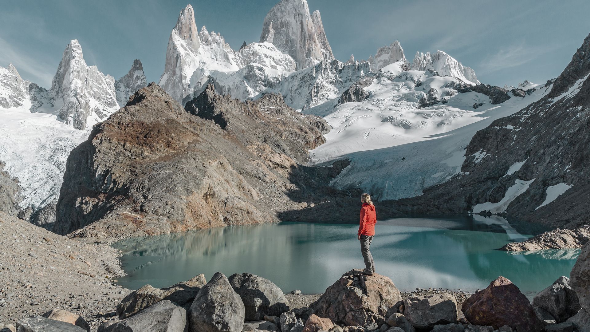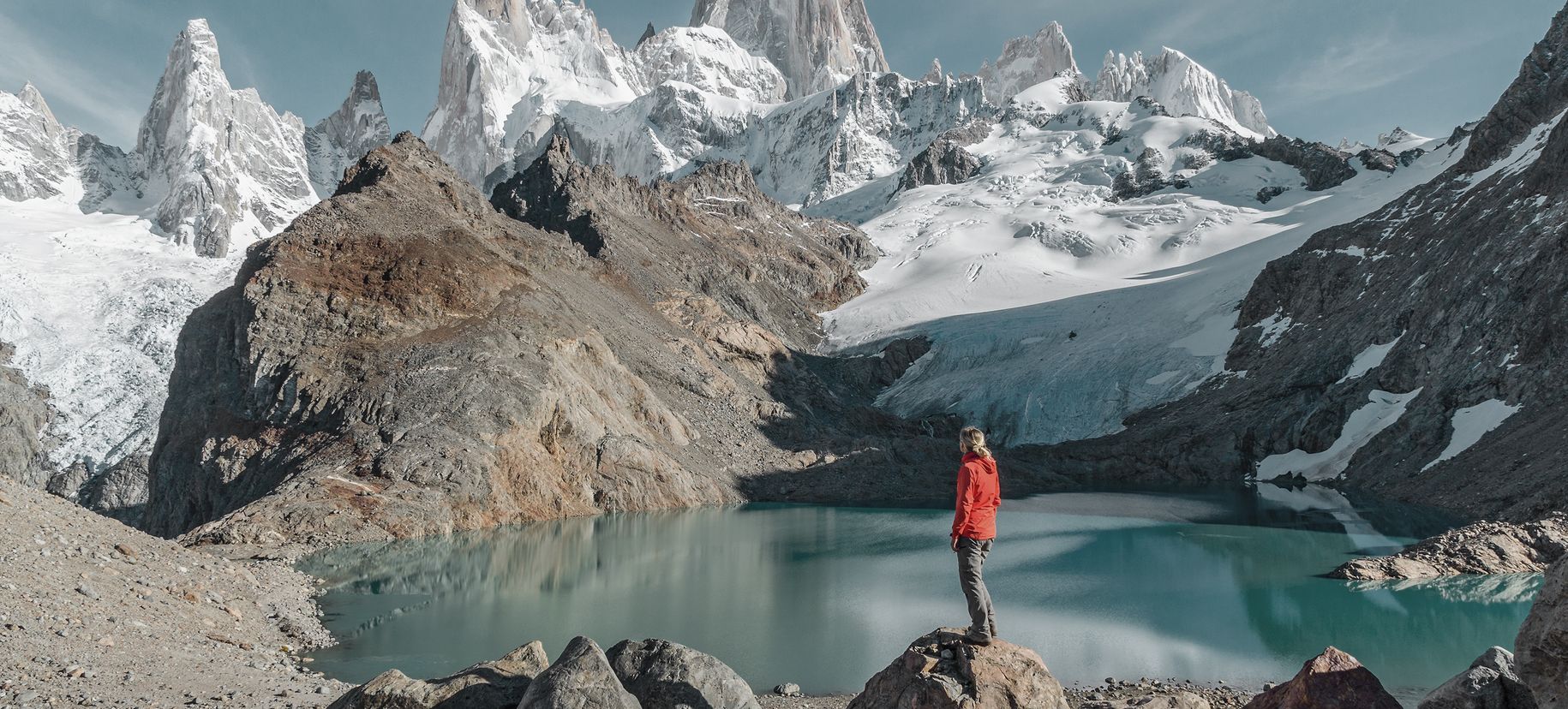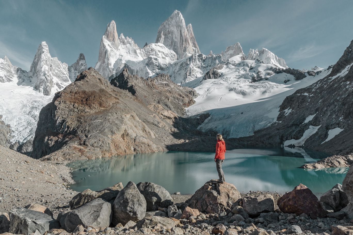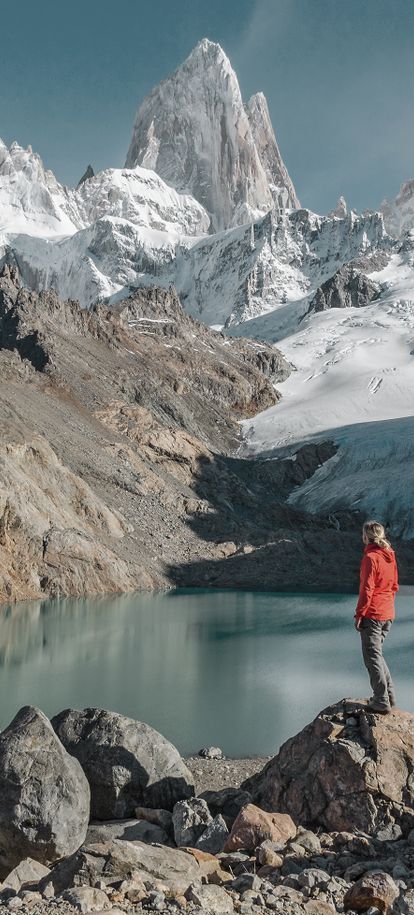 El Chaltén s’éveille lentement, niché au cœur du Parc National Los Glaciares. Quelques rues bordées de maisons de bois, des sacs à dos prêts à partir, et déjà le regard est attiré par une silhouette lointaine : le Fitz Roy, sommet élancé, reconnaissable entre tous par sa face verticale qui accroche les nuages. Ici, les sentiers partent directement du village ou de ses proches environs. Pas besoin de transport ni de longue préparation : on marche, simplement, et le paysage change autour de soi. La Laguna Capri, les miradors du Fitz Roy ou de la Laguna de los Tres… chaque étape révèle une nouvelle perspective sur la montagne. Le ciel joue avec les couleurs, les nuages s’accrochent aux pics, le vent souffle fort puis s’apaise soudain. Les randonnées sont parfois exigeantes, mais jamais monotones. On traverse des forêts de lengas, on longe des rivières aux eaux claires, on grimpe entre rochers et buissons, toujours guidé par la silhouette du massif. Le Fitz Roy ne se laisse pas toujours voir facilement : certains jours, il se cache derrière un voile, comme s’il voulait qu’on le mérite.