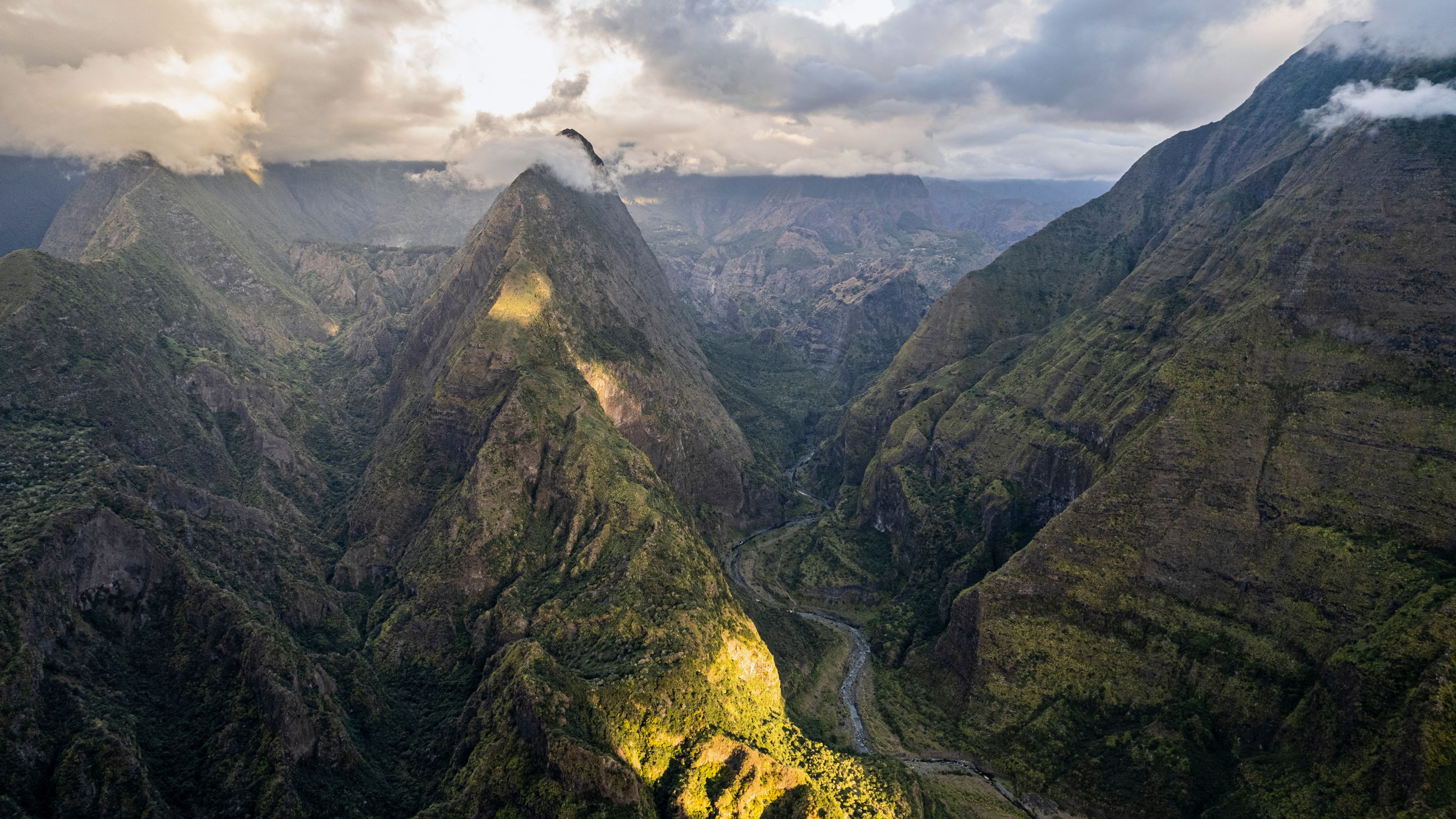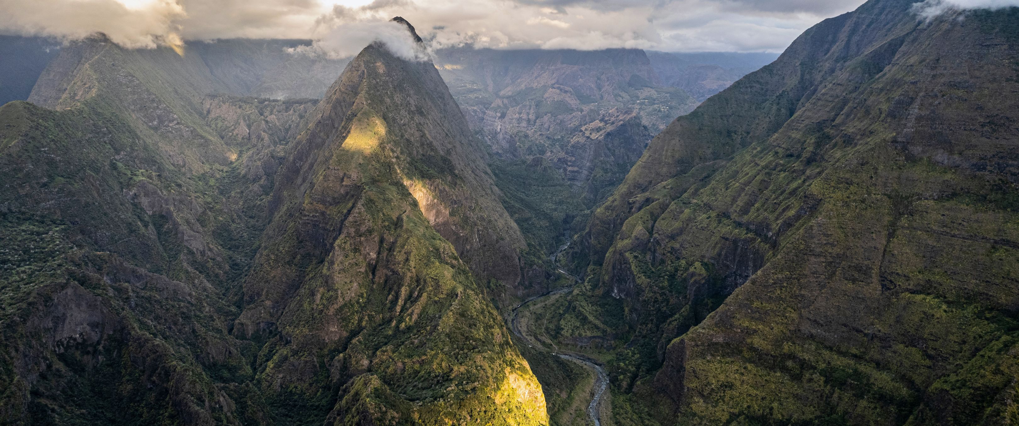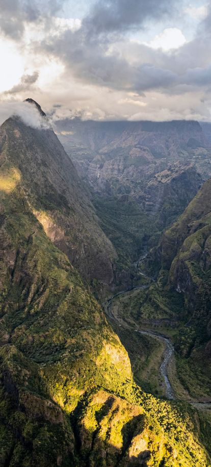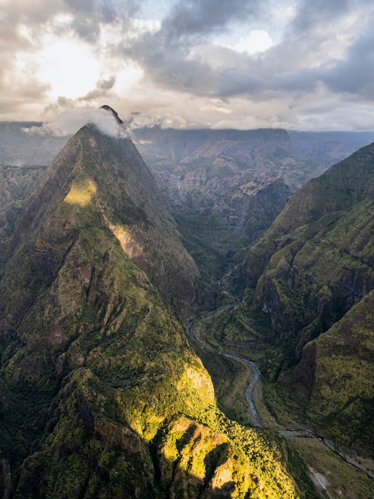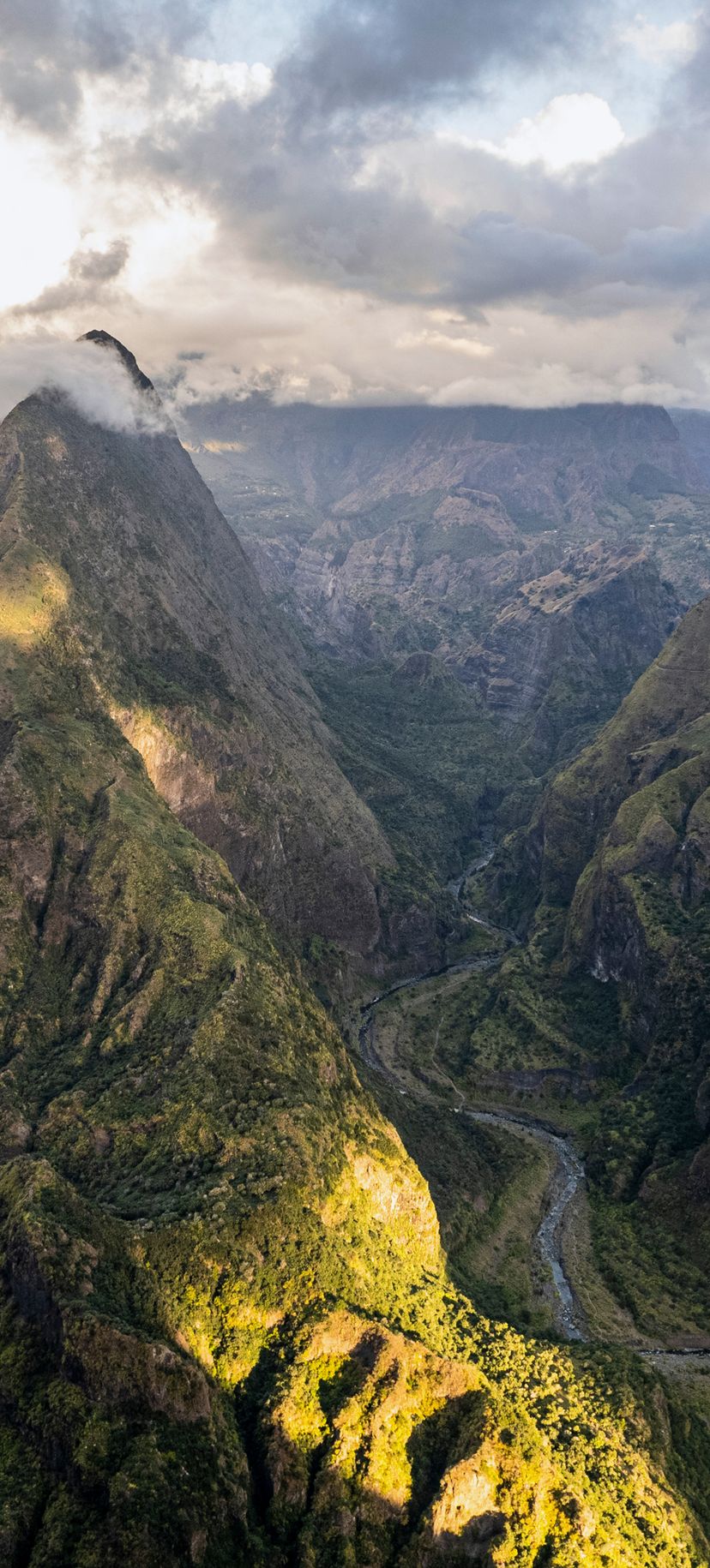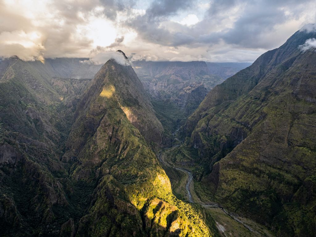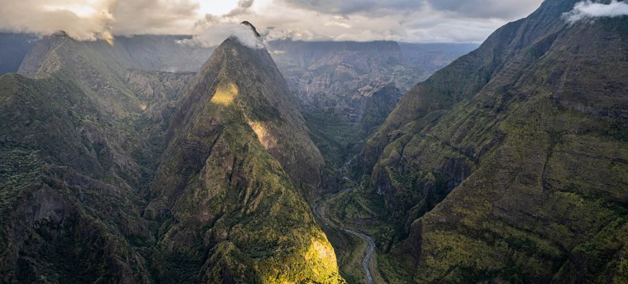 Emblème de l’île et temps fort de tout voyage Réunion, je vous emmène côté volcan tout d’abord, le « gentil monstre » de l’île : le Piton de la Fournaise. Il n’y a pas à dire : ce volcan est tout simplement hallucinant, une sacrée force de la nature ! Montagne noire entourée d’un vaste tapis de lave séchée, ponctuée de nombreux cratères disséminé tout autour de ses flancs. Le tout est encerclé de véritables remparts tombant à pic, entre 100 et 400 m, fermant ainsi le fameux « enclos ». Classé parmi les volcans les plus actifs du monde, il rentre en éruption en moyenne tous les 9 mois depuis 10 ans, sans jamais inquiéter la population. La randonnée classique consiste à rejoindre le cratère de Dolomieu, au cœur de l’enclos (env. 5h00 aller/retour)… enfin quand le volcan est assoupi ! Lors de notre passage, encore grincheux de son réveil, l’accès aux pieds du monstre était fermé par précaution. Nous avons donc opté pour une balade non moins inoubliable le long des remparts, jusqu’au Nez Coupé Ste-Rose. Comptez suivant la force de vos mollets et votre résistance à un soleil implacable (en effet la lave réfléchit intensément le soleil !) entre 4h et 5h de marche aller/retour. En chemin, des vues à couper le souffle s’offrent à vous sur différents angles du volcan, avec en finalité la mer en toile de fond. Nous ne saurons pas laquelle des deux randonnées est la plus belle, mais aucun doute qu’il s’agit d’une alternative absolument magique.