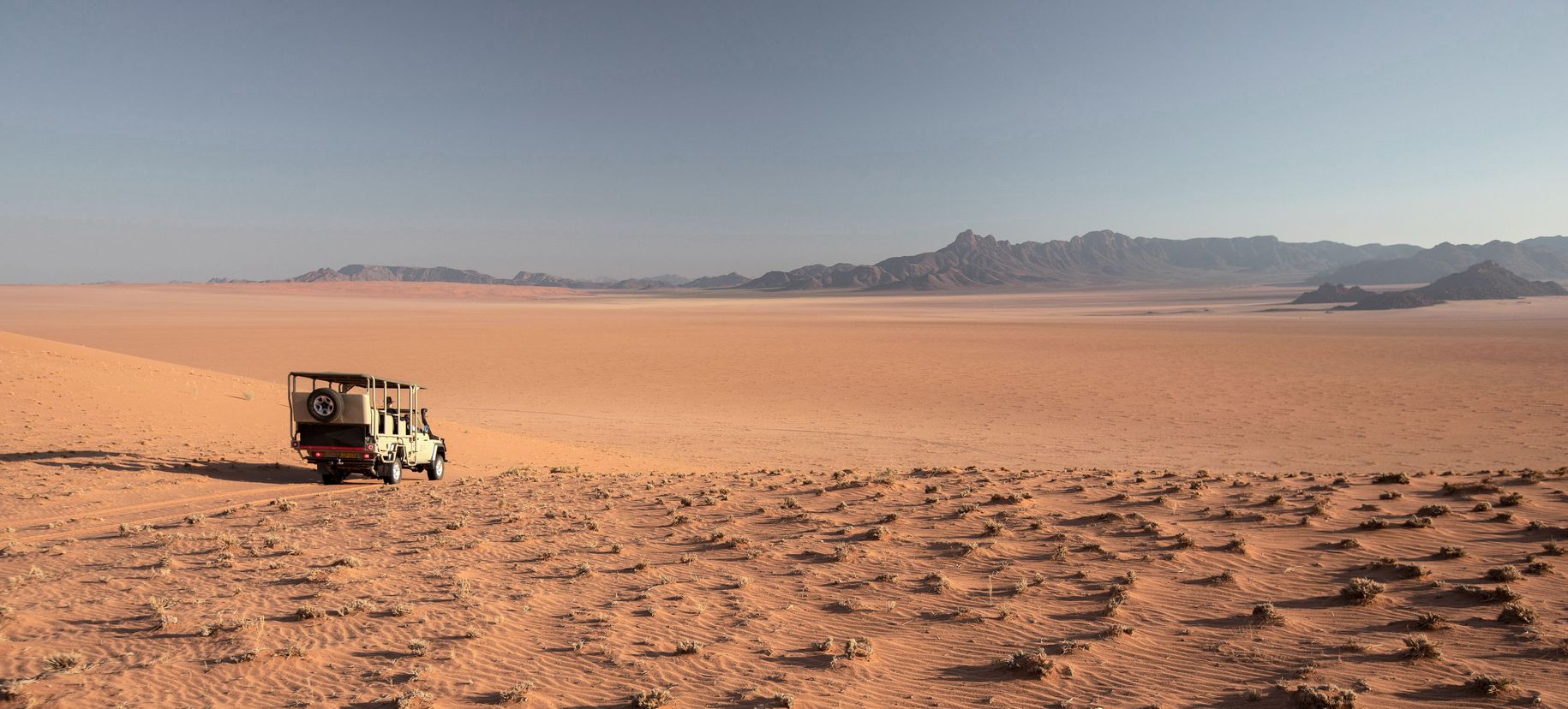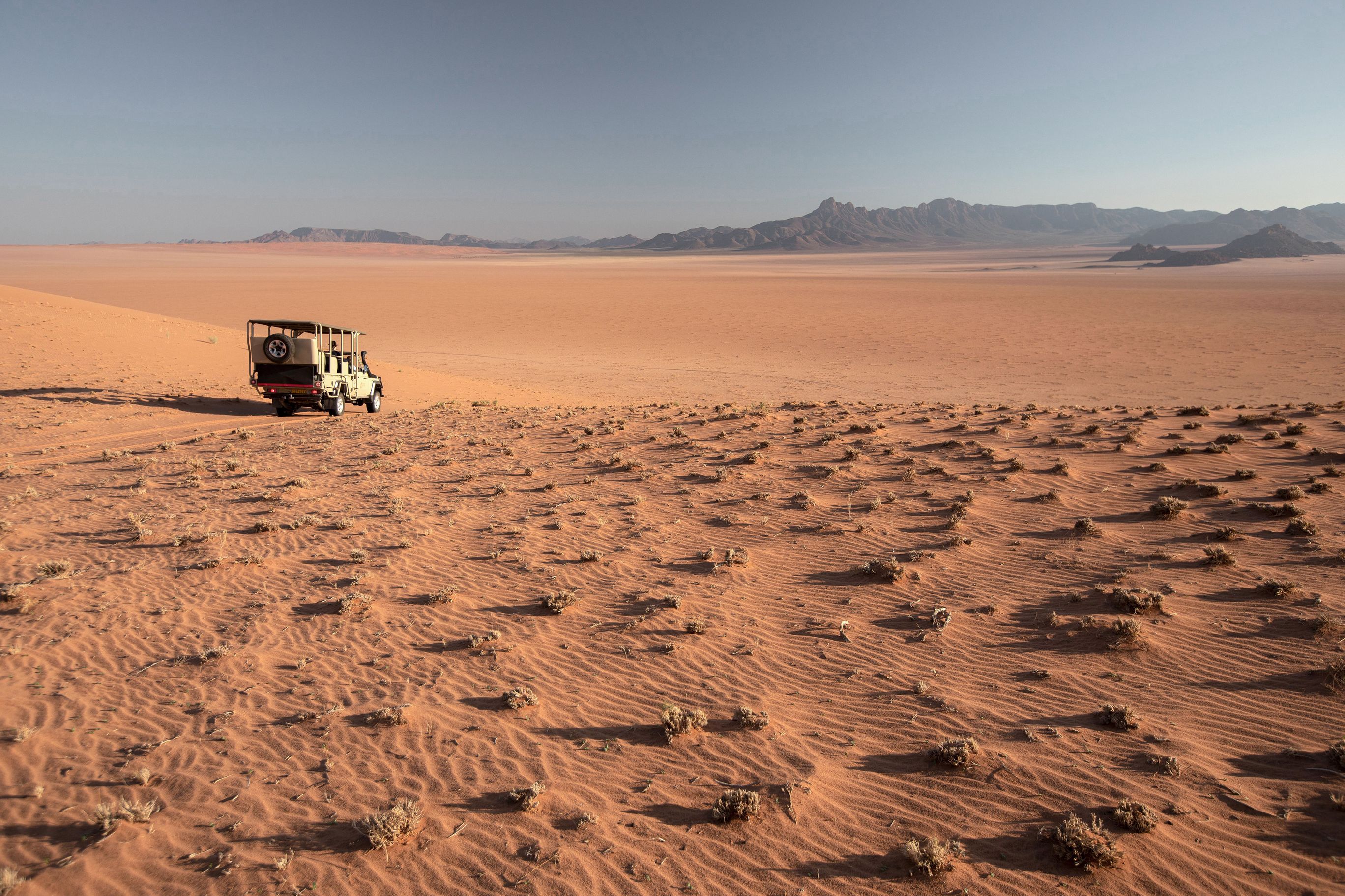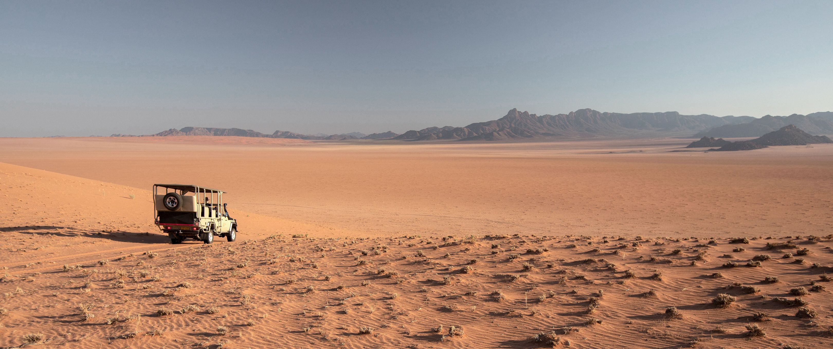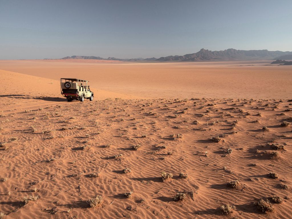 Ce voyage atypique vous propose une grande traversée du nord au Sud, entre la Namibie et l'Afrique du Sud. Basé sur un voyage personnel d'un membre de l'équipe tourisme pour tous, il vous propose des décors absolument extraordinaires loin des foules, au fil de logements tous aussi exceptionnels qui transformeront votre expérience de voyage. Il débute par l'époustouflante réserve privée du Namib Rand, sans aucun l'un des plus beaux lieux de Namibie. L'envoûant mélange des couleurs, où le sable rougeâtre se mêle aux herbes jaunes et aux montagnes bleutées, compose un panorama d'une beauté bouleversante. C'est le terrain de jeu notamment des oryx et de nombreux autres animaux adaptés aux rudes conditions du désert. Isolé à souhait, c'est l'endroit idéal pour déconnecter et se laisser submerger par la puissance sauvage de la nature.