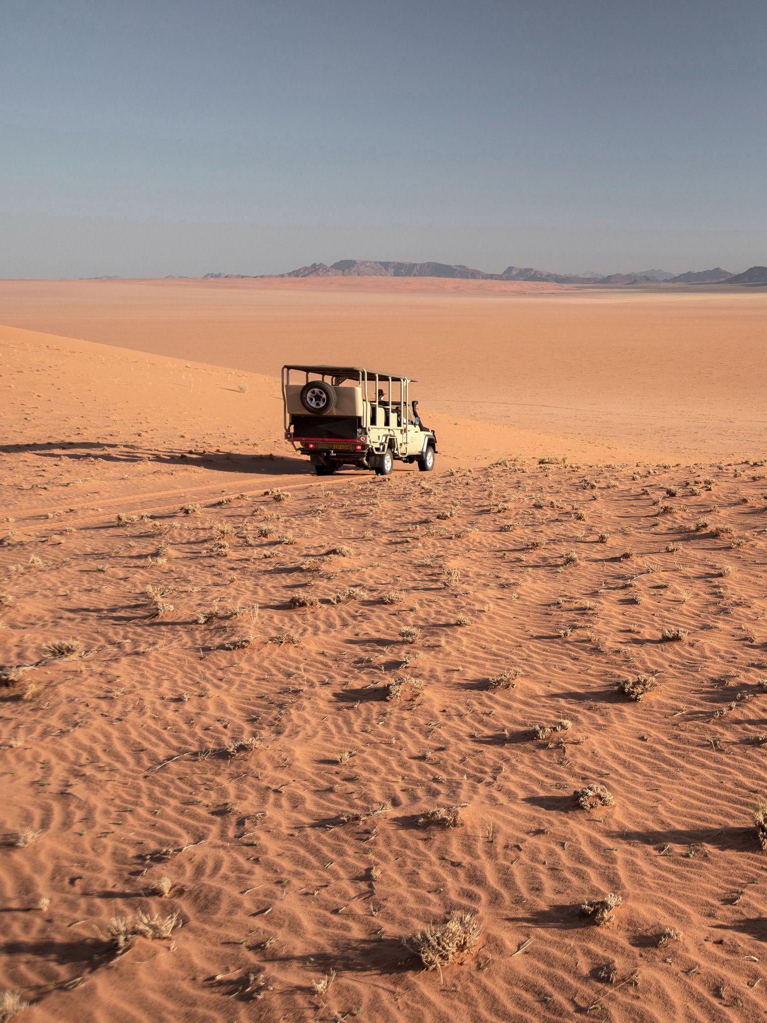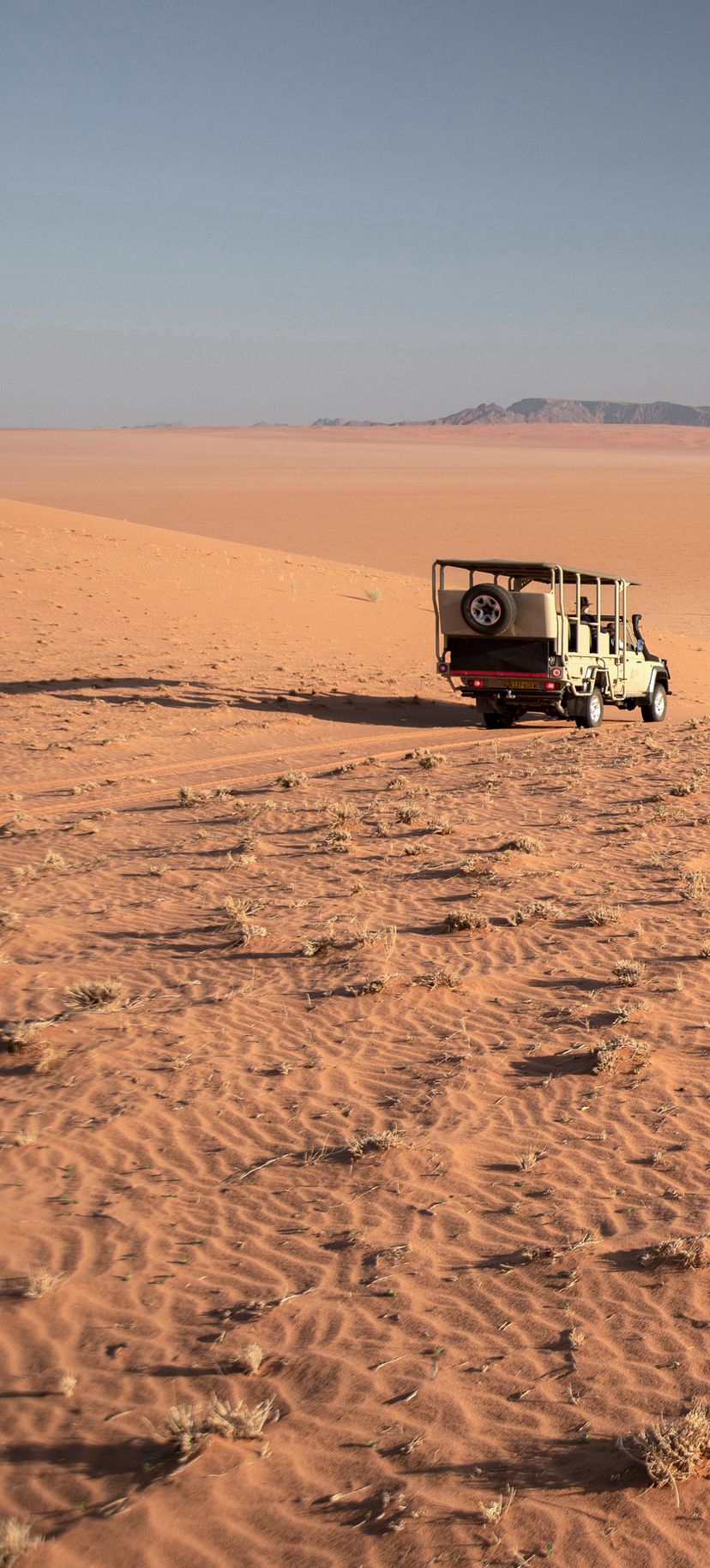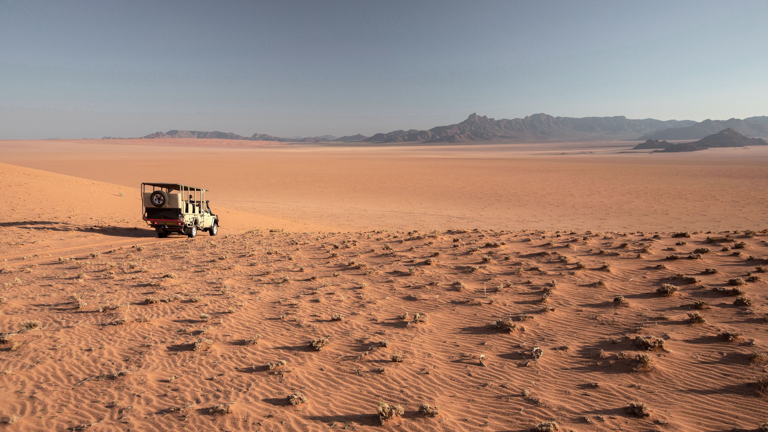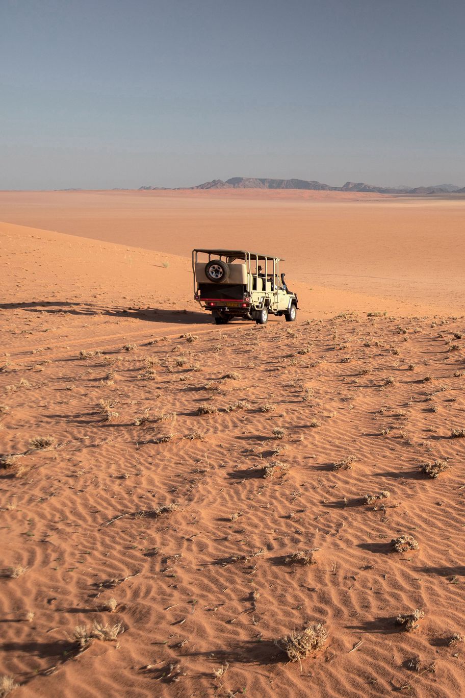 Ce voyage atypique vous propose une grande traversée du nord au Sud, entre la Namibie et l'Afrique du Sud. Basé sur un voyage personnel d'un membre de l'équipe tourisme pour tous, il vous propose des décors absolument extraordinaires loin des foules, au fil de logements tous aussi exceptionnels qui transformeront votre expérience de voyage. Il débute par l'époustouflante réserve privée du Namib Rand, sans aucun l'un des plus beaux lieux de Namibie. L'envoûant mélange des couleurs, où le sable rougeâtre se mêle aux herbes jaunes et aux montagnes bleutées, compose un panorama d'une beauté bouleversante. C'est le terrain de jeu notamment des oryx et de nombreux autres animaux adaptés aux rudes conditions du désert. Isolé à souhait, c'est l'endroit idéal pour déconnecter et se laisser submerger par la puissance sauvage de la nature.