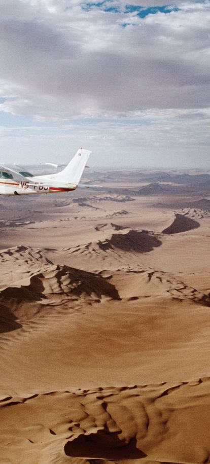 Vivre l'Afrique extraordinaire, voici comment l'on pourrait définir ce safari aérien d'exception. Depuis les airs ou sur la terre ferme, partez à la découverte de certains des plus beaux paysages du continent et de zones sauvages fréquentées par une poignée de voyageurs privilégiés. Déserts d'une beauté bouleversante, vie sauvage foisonnante et logements de luxe comptant parmi la crème de l'Afrique australe, ce voyage d'une vie constitue une expérience inoubliable... Un matin, vous vous levez en admirant le lever du soleil sur les vastes dunes orangées du désert du Namib Rand, tandis que quelques jours plus tard vous vous faufilez dans les canaux verdoyants du fameux delta de l'Okavango. Au fil de la mystique Skeleton Coast, dans les immenses territoires reculés du Kaokoland ou encore depuis pans du parc de Makgadikgadi, l'Afrique se dévoilera à vous dans toute sa majesté, sa diversité et sa grandeur. L'un des derniers bastions de notre planète pour la nature, où l'homme n'est qu'un discret hôte de passage, contemplatif et bienveillant. Envolez-vous vers des instants d'éternité...