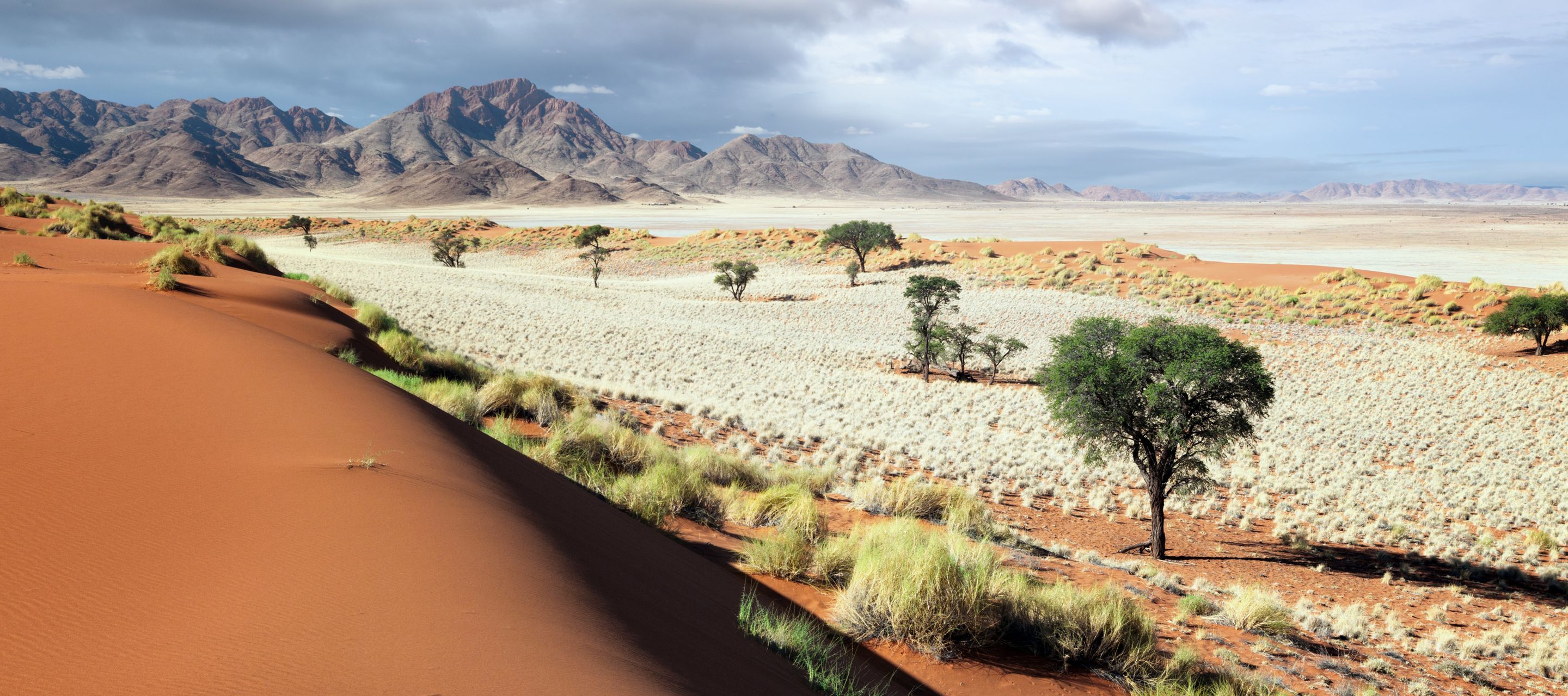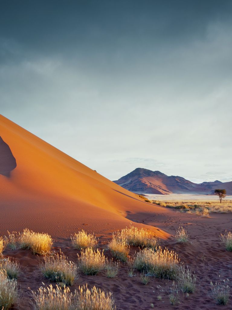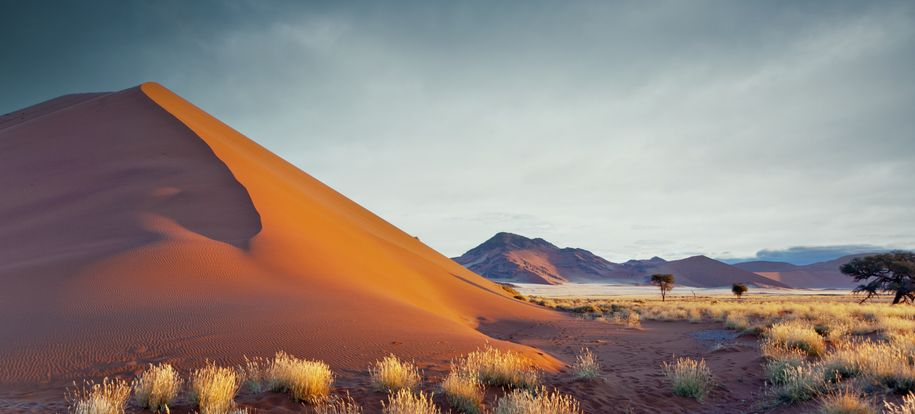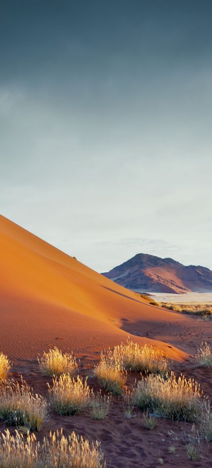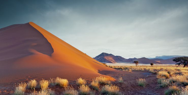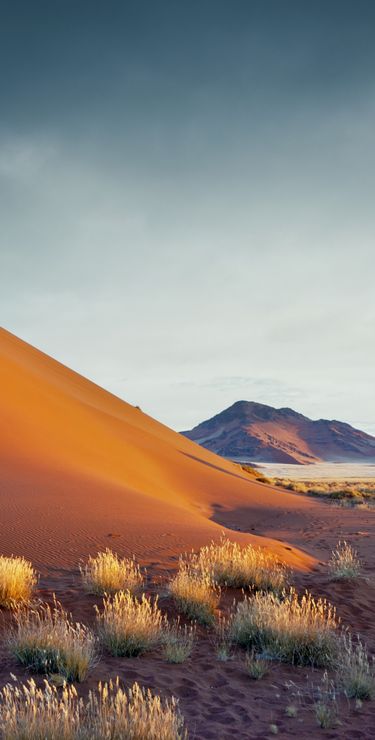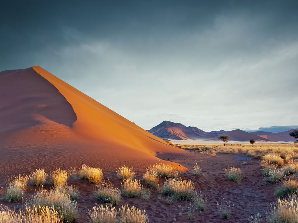 Nous mettons à présent le cap vers le désert du Kalahari, avec une question naïve en tête : est-ce vraiment comme dans le film « Les dieux sont tombés sur la tête » ?? La réponse est… non, mais il faut dire qu’en réalité le film se passe au Botswana. Cependant nous nous attendions à un bush sec et à une terre au sable beige clair, au lieu de cela nous avons trouvé des dunes d’une intense couleur orange, entrecoupées de vertes touffes d’herbes et d’arbres. Il faut dire que nous avons eu la chance de découvrir le pays au mois d’avril, juste après une excellente saison des pluies, et le paysage s’en trouvait parsemé d’un vert tendre offrant un magnifique contraste avec le sable, hautement photogénique. Coup de cœur pour cette région qui restera l’une de nos favorites, où nous découvrons la culture bushmen et ses langues à « cliques », et où nous apercevons nos premiers animaux. Nous testons également notre premier traditionnel « sundowner », l’apéritif au coucher du soleil après un safari, de préférence au sommet d’une dune orangée afin d’admirer les couleurs magiques de la fin de journée… décidément ce pays nous plaît !