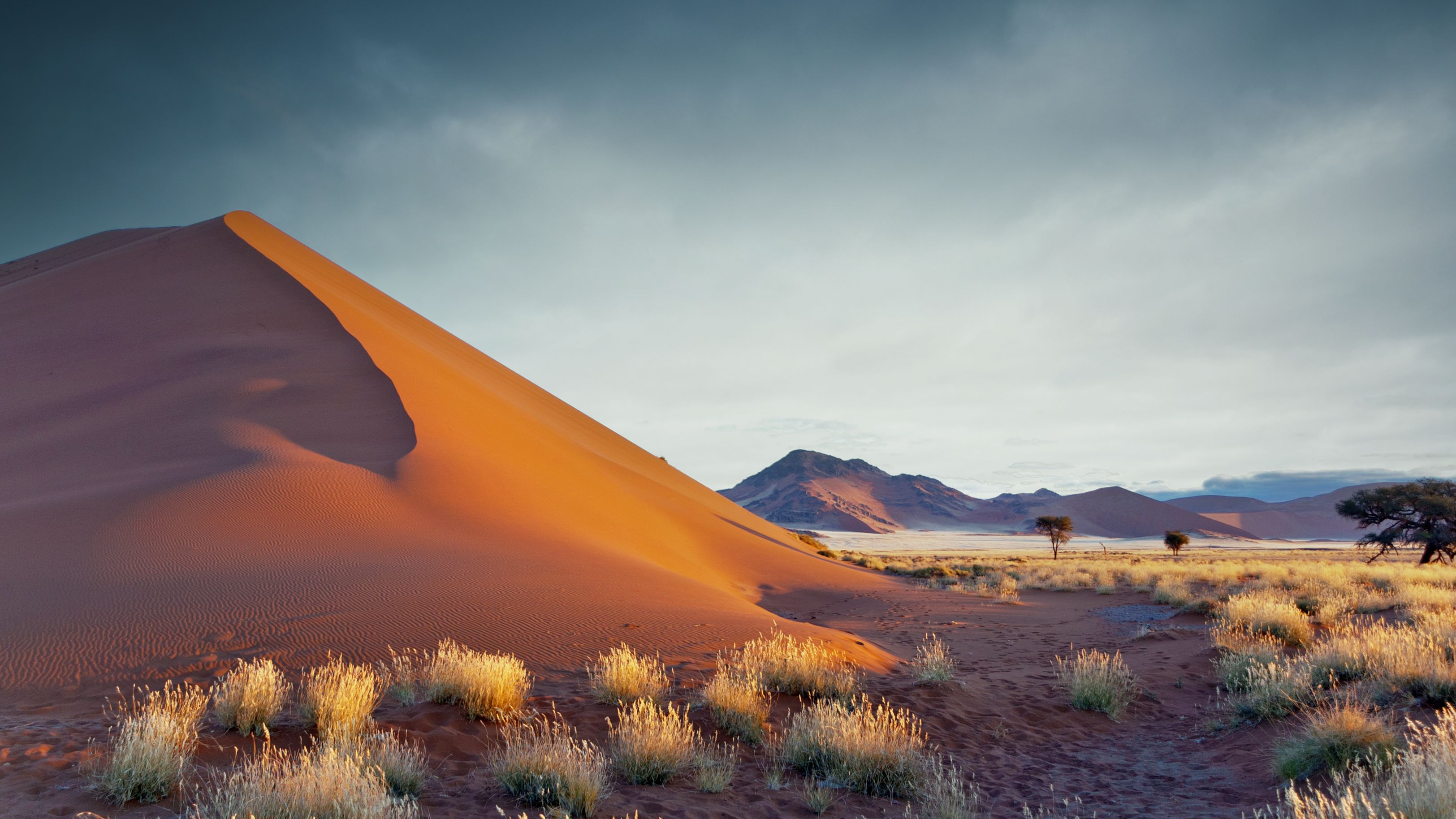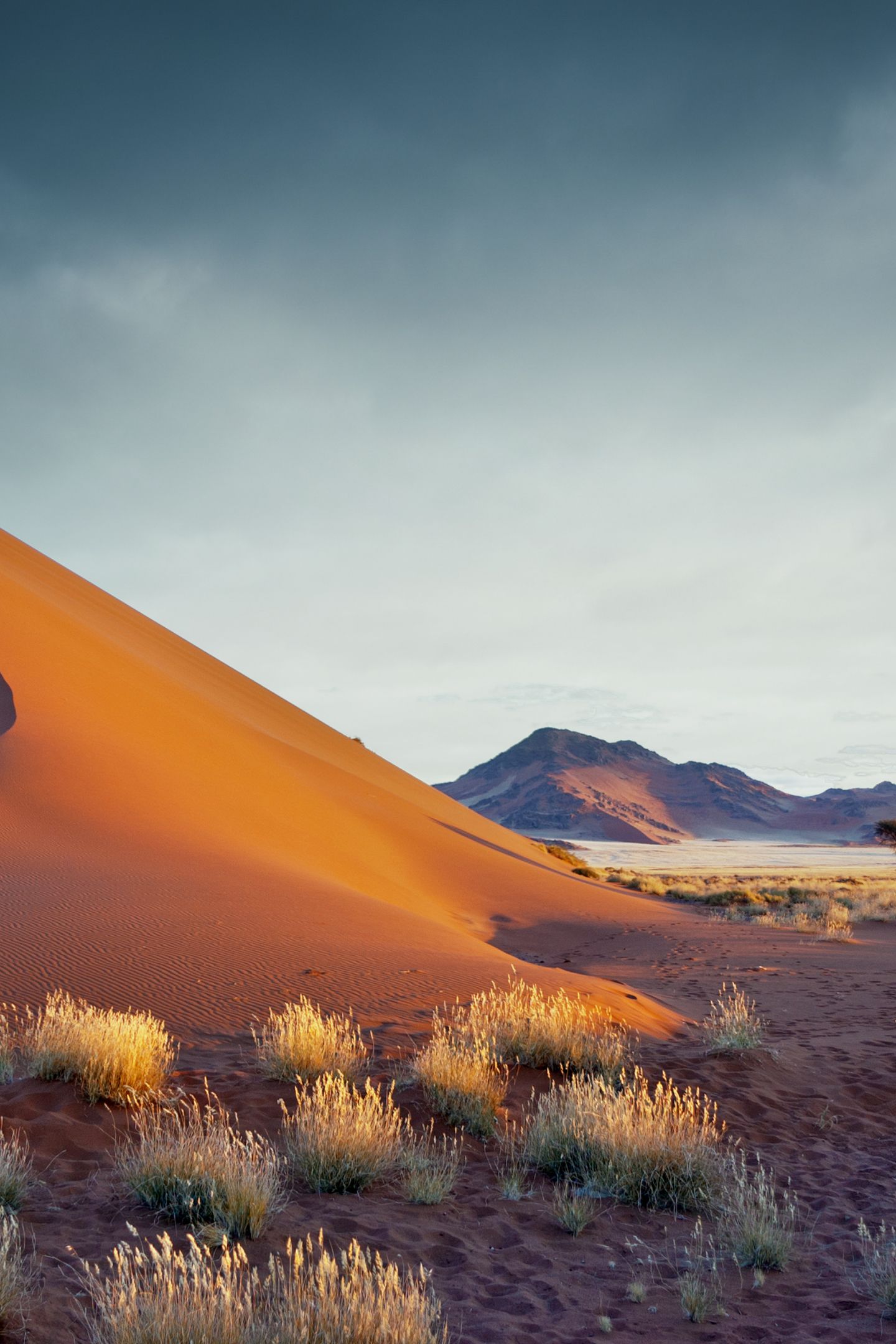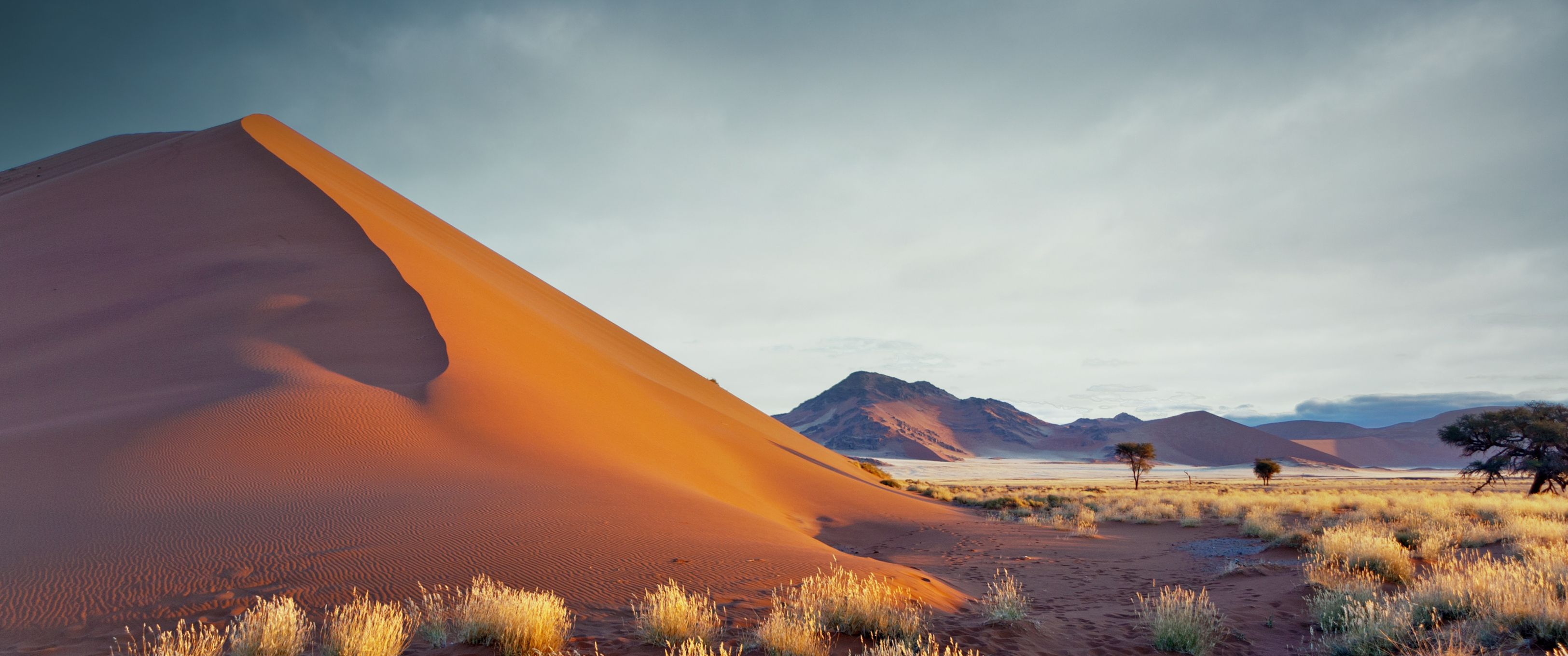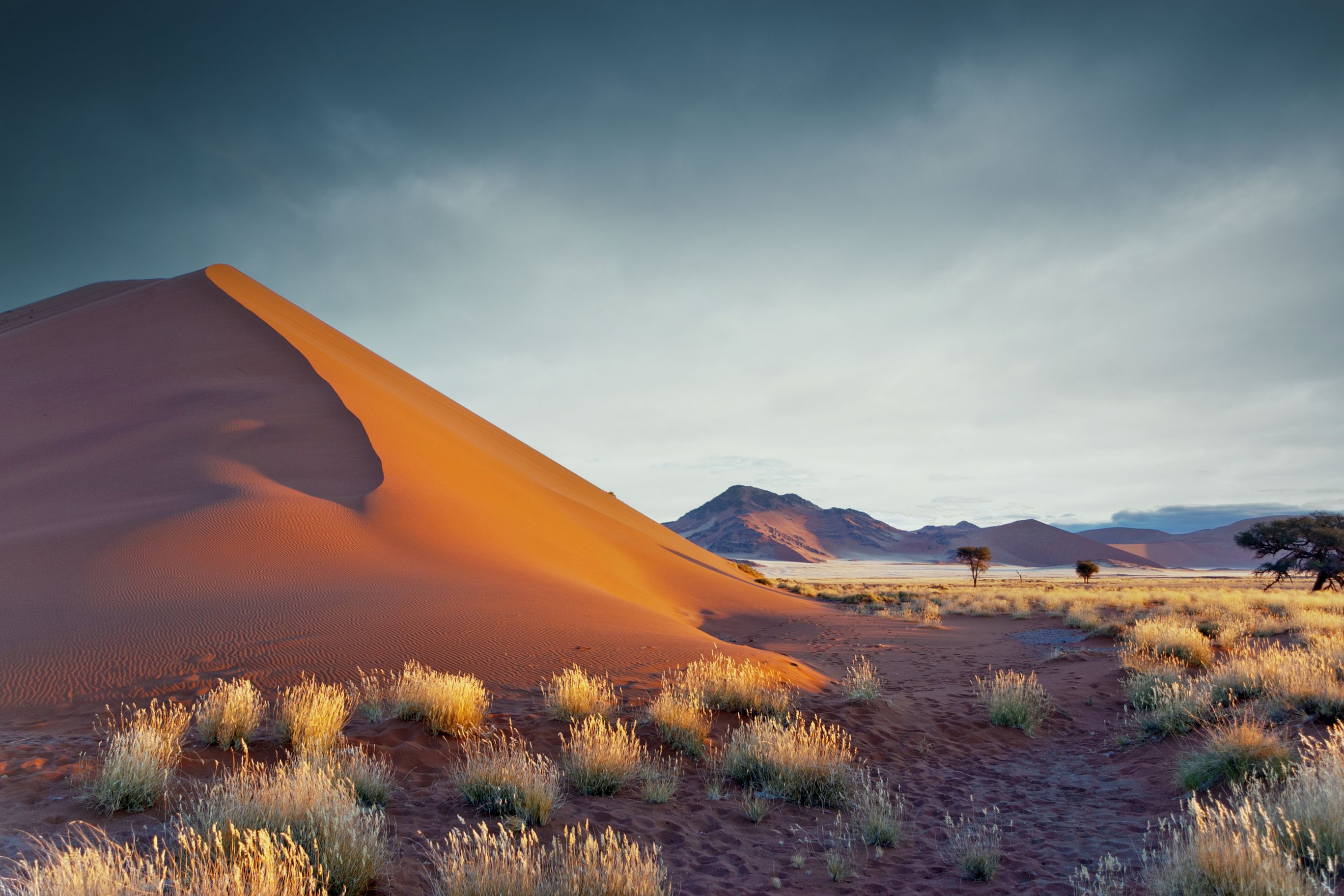 Nous mettons à présent le cap vers le désert du Kalahari, avec une question naïve en tête : est-ce vraiment comme dans le film « Les dieux sont tombés sur la tête » ?? La réponse est… non, mais il faut dire qu’en réalité le film se passe au Botswana. Cependant nous nous attendions à un bush sec et à une terre au sable beige clair, au lieu de cela nous avons trouvé des dunes d’une intense couleur orange, entrecoupées de vertes touffes d’herbes et d’arbres. Il faut dire que nous avons eu la chance de découvrir le pays au mois d’avril, juste après une excellente saison des pluies, et le paysage s’en trouvait parsemé d’un vert tendre offrant un magnifique contraste avec le sable, hautement photogénique. Coup de cœur pour cette région qui restera l’une de nos favorites, où nous découvrons la culture bushmen et ses langues à « cliques », et où nous apercevons nos premiers animaux. Nous testons également notre premier traditionnel « sundowner », l’apéritif au coucher du soleil après un safari, de préférence au sommet d’une dune orangée afin d’admirer les couleurs magiques de la fin de journée… décidément ce pays nous plaît !