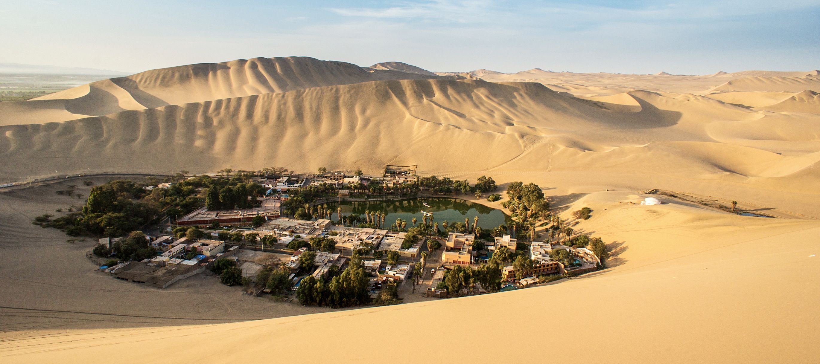 Après une petite visite de la charmante cité coloniale d’Arequipa et son énorme monastère (20’000 m2, une véritable « ville dans la ville »), nous arrivons sur la côte. Ici nouveau changement radical de décor dans notre circuit au Pérou : fini l’altitude des Andes, place à un paysage aride et désertique. Nous avons toujours adoré le désert, aussi pas question de faire l’impasse sur les petites dunes qui ponctuent la côte péruvienne entre Lima et Ica. C’est donc parti pour un tour en buggy à toute allure sur les sables qui s’étalent autour de l’oasis de Huacachina !